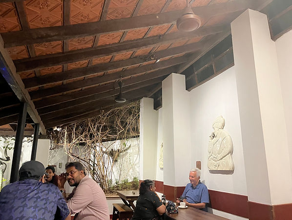 Almost-empty café but best coffee I'd had in India, best and ONLY carbo-free meal I'd had, period, yum, freshly-cooked tuna w/greens and an ultra-light dressing for a warm and belly-warming salad AND...it doesn't take much in that empty space to spot another founder and, bonus, make a meaningful connection. We're always in the right place at the right time, even when it doesn't seem that way.